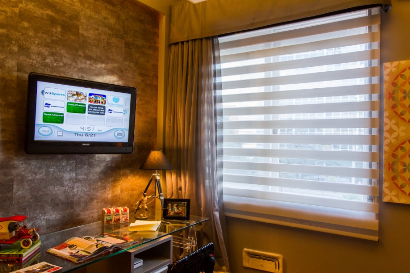 A cortina Rolô Double Vision é ideal para ambientes de sala, quarto e suítes.